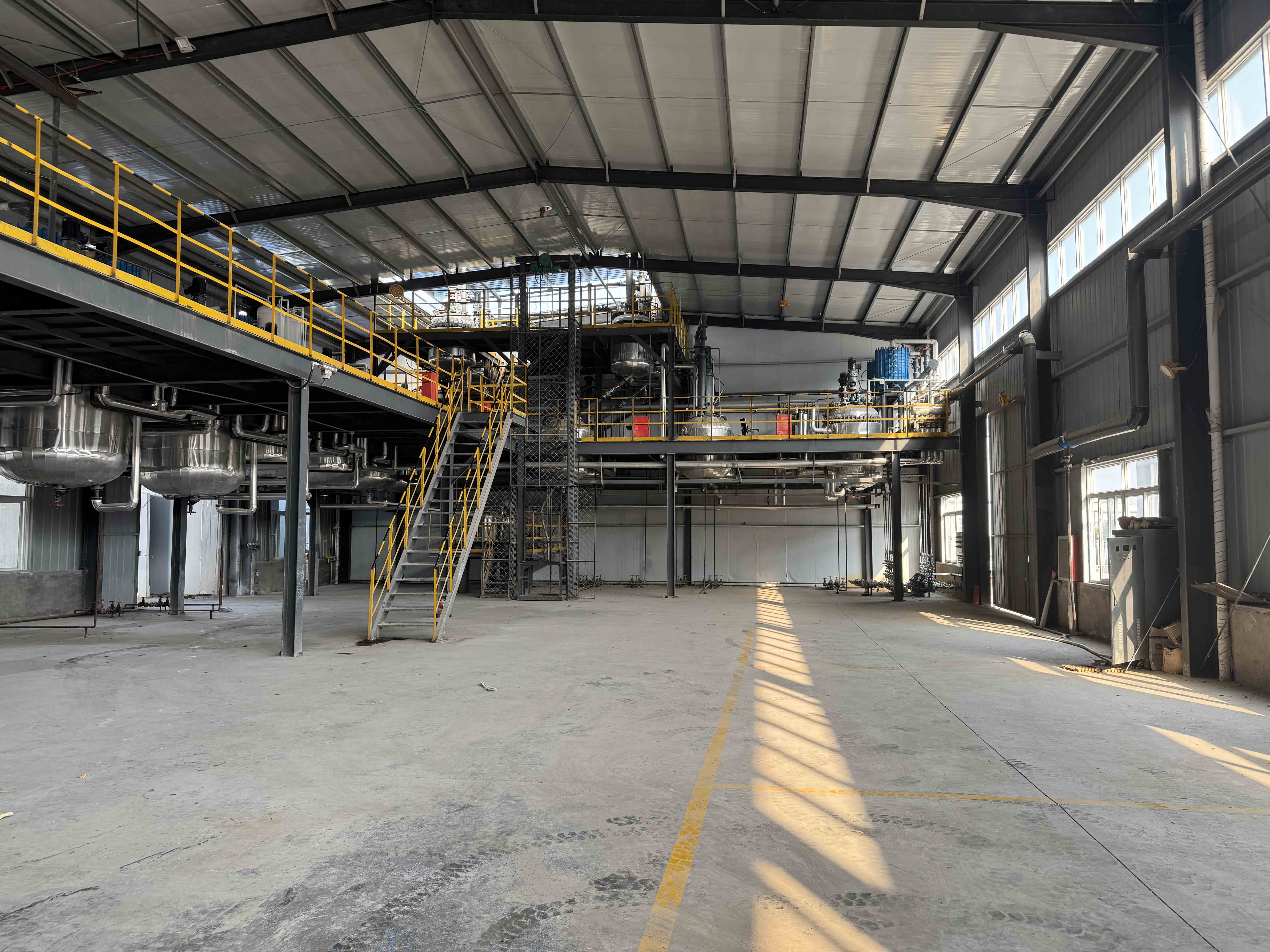from raw-material receiving to finished-goods loading. Elevated platforms, stainless-steel equipment and clear material-flow paths ensure safe operation, clean production and easy maintenance for both liquid and powder additives.